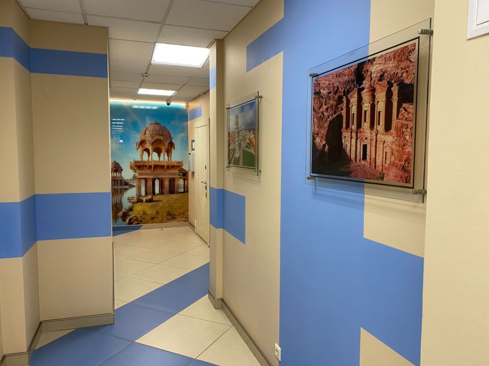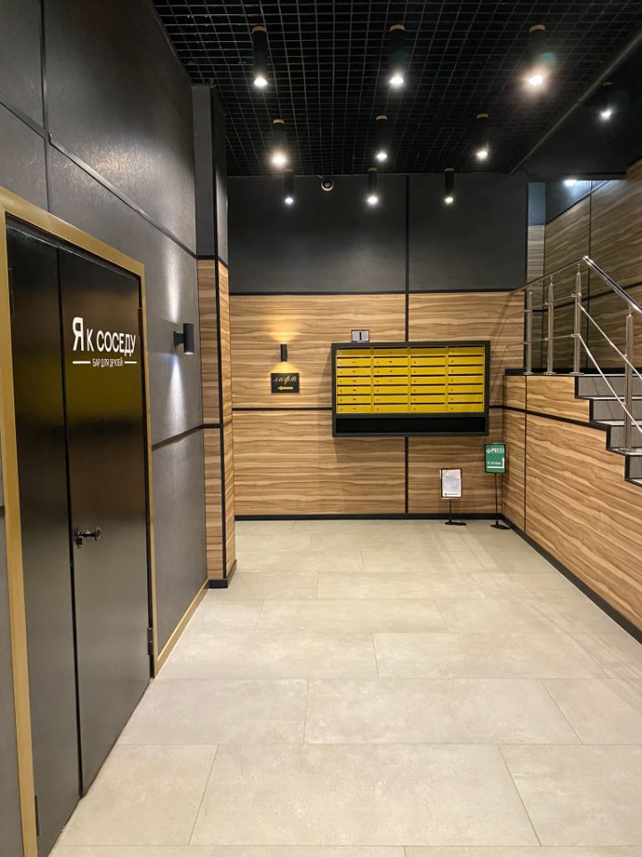 Расположено на 5-м этаже, на этаж ведут два лифта.